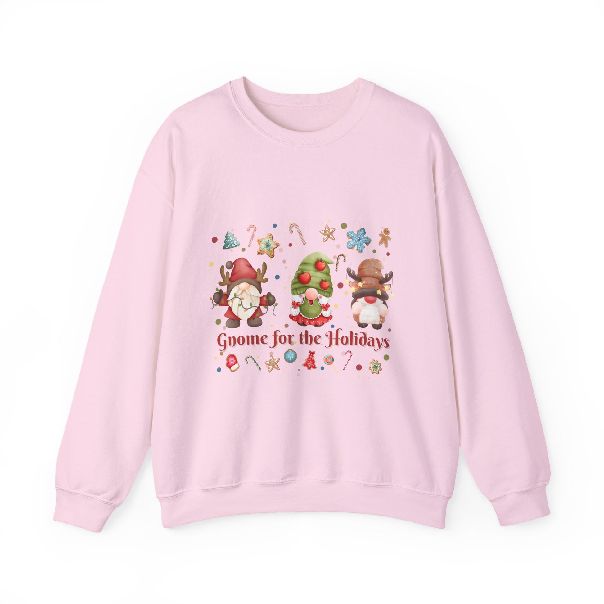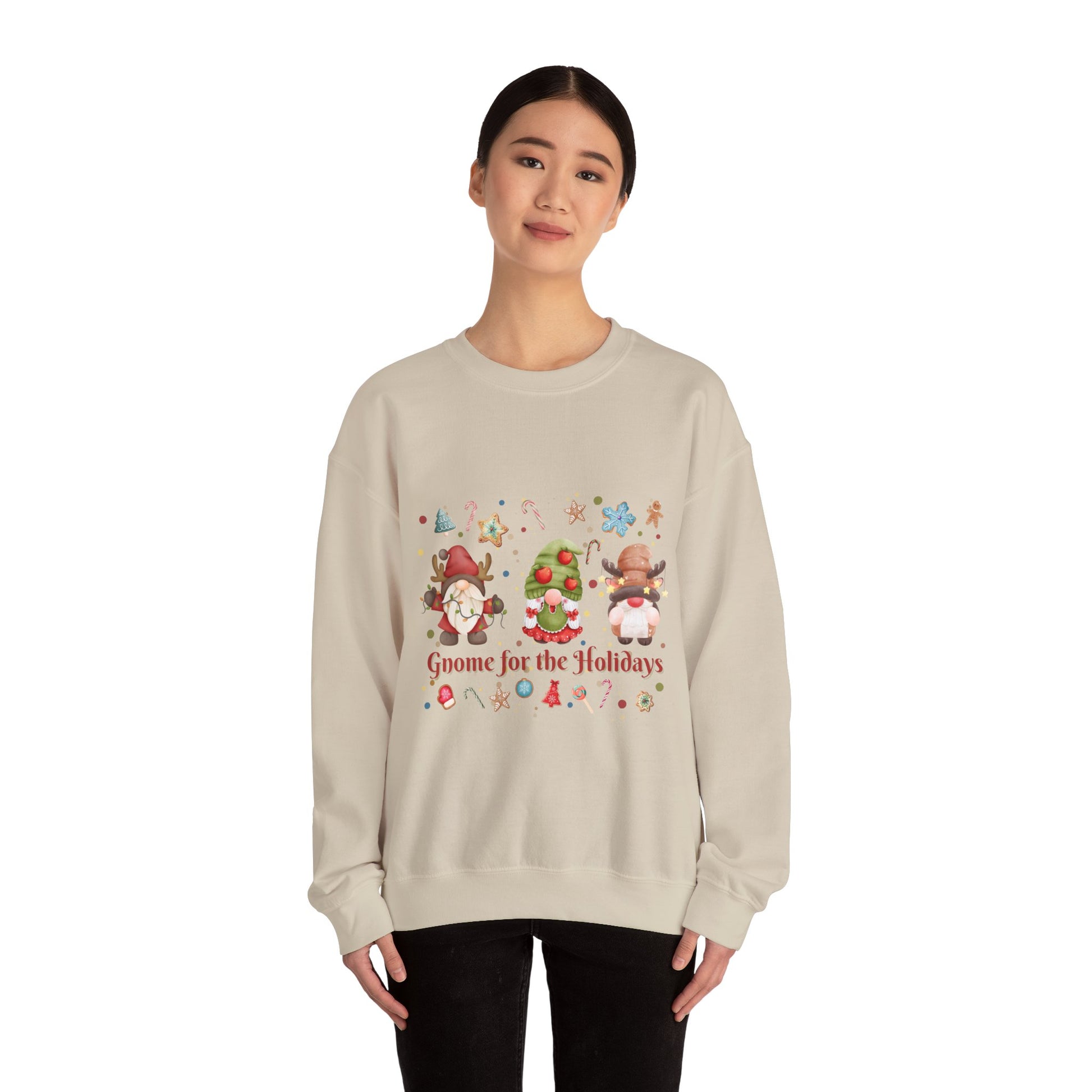 This sweet Christmas-themed sweatshirt featuring gnomes is perfect for the holiday season. It brings a cozy and festive vibe to your home and is great for family gatherings. Ideal for adults looking for a comfortable and durable holiday sweatshirt.