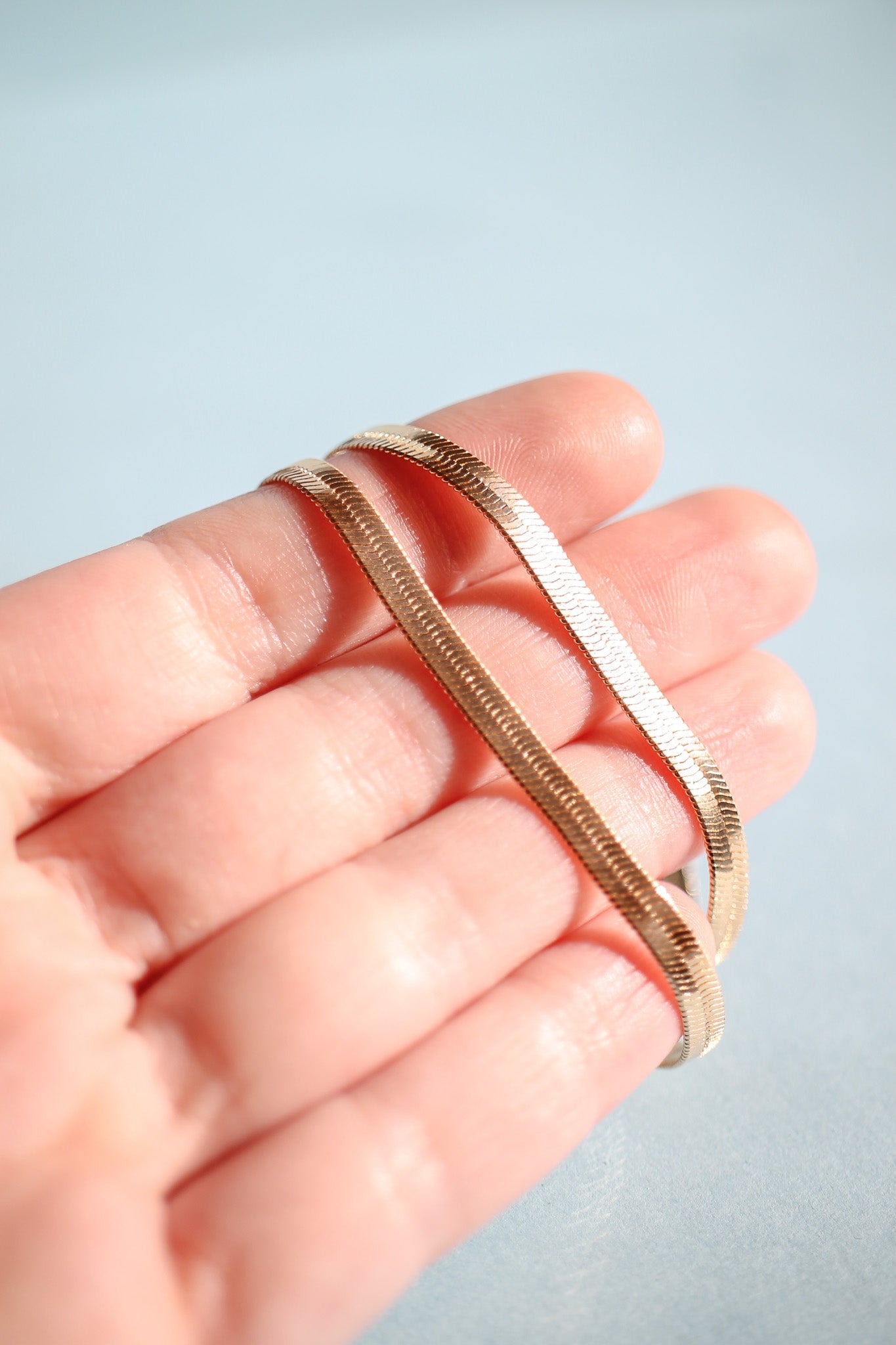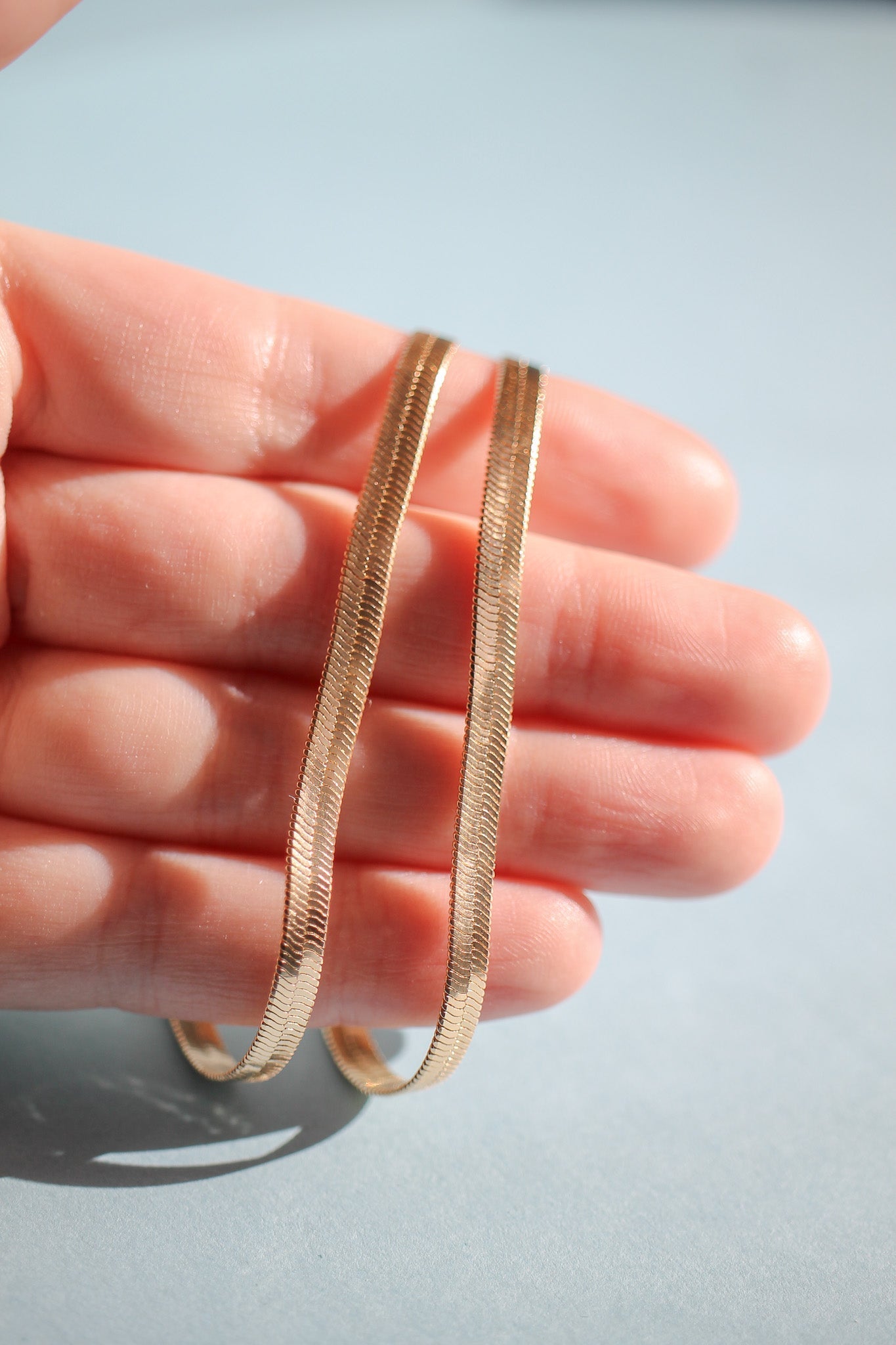 The Hestia Necklace is the perfect pick to add some subtle sparkle to your everyday outfit! Crafted from 18k gold filled chain in a 4mm herringbone pattern, this luxe piece looks gorgeous alone or stacked with other favorite necklaces. Plus, it's crafted with high quality materials and is tarnish-proof, hypoallergenic, and nickel free. Basically its an heirloom quality piece that you'll be able to pass down for generations to come. This necklace is 16 inches in length