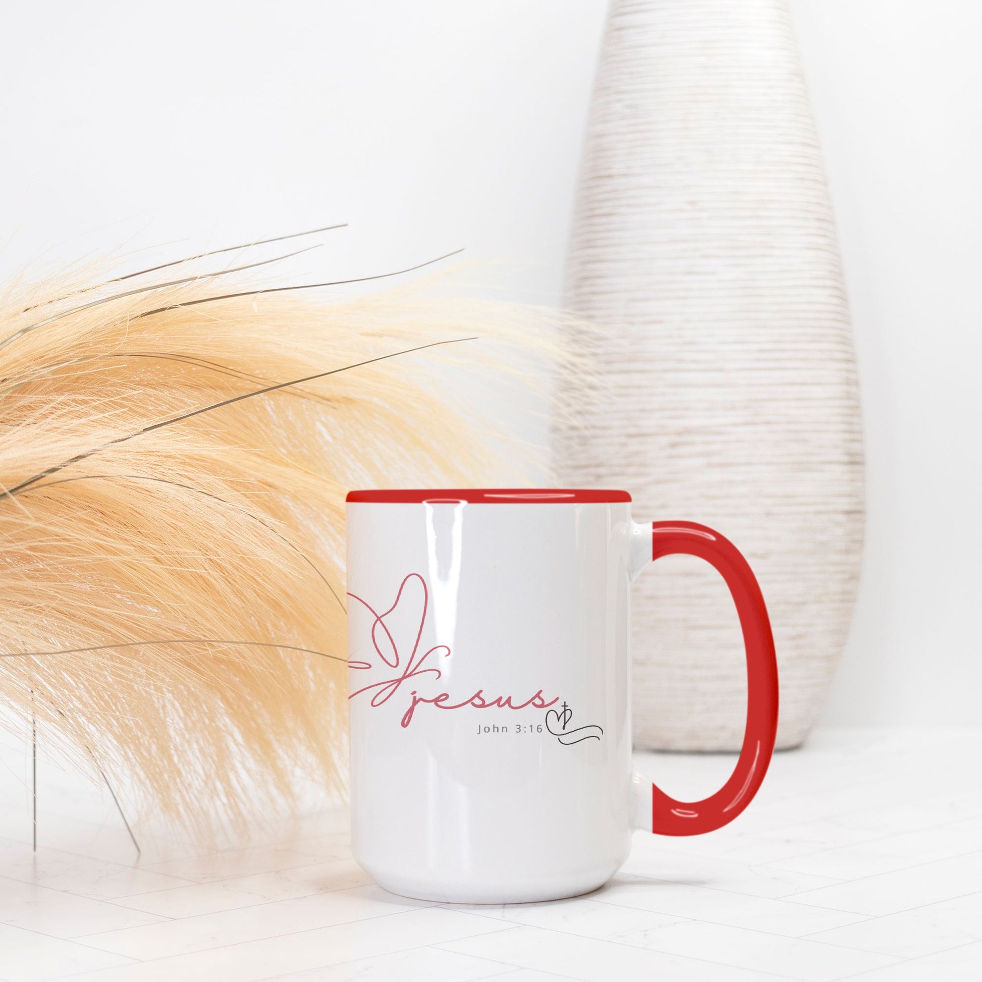 Experience warmth and inspiration with Jesus using the John 3:16 15oz. Red & White Mug, a beautiful addition to your Faith Mug Series collection. Crafted with care, this mug is not just a vessel for your favorite beverages; it’s a daily reminder of love, hope, and belief. Featuring the powerful scripture John 3:16, it invites you to reflect on the essence of faith with every sip.