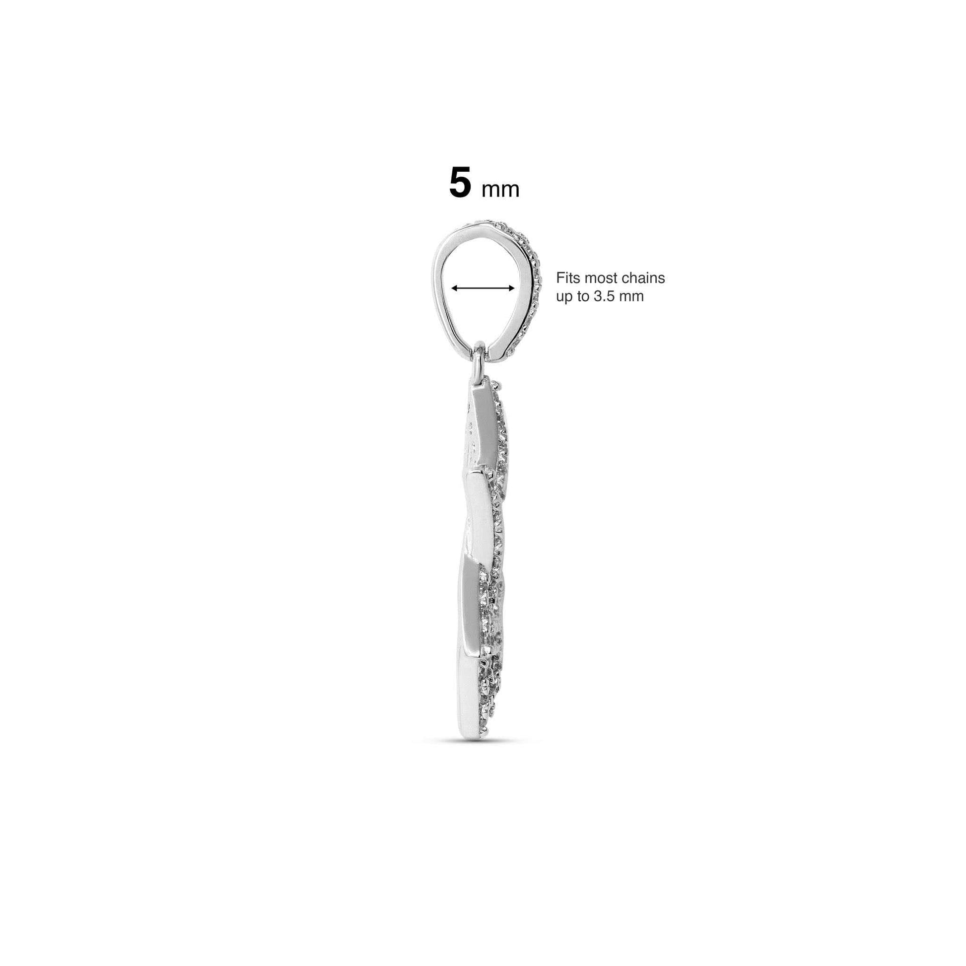 Accentuating its refined design, this pendant is adorned with clear cubic zirconia (CZ) stones, expertly set to create a dazzling, diamond-like sparkle. These high-quality CZ stones enhance the pendant’s sophistication and spiritual essence, ensuring it catches the light from every angle.