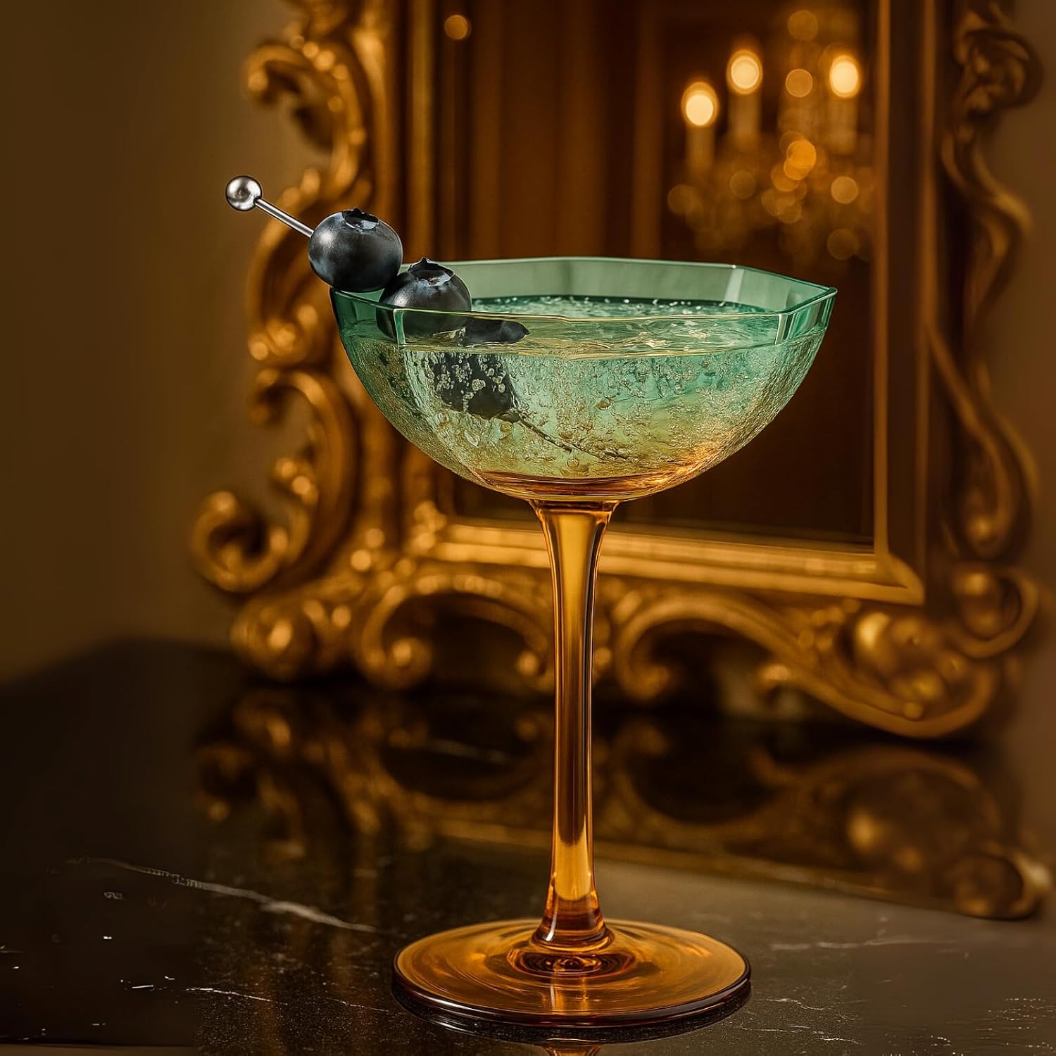 Add artistic flair to your glassware collection with this hexagonal teal and brown coupe glasses set, crafted for elegance and durability. Featuring a modern shape and festive color palette, these break resistant glasses are perfect for champagne, cocktails, and celebration drinks. Ideal for weddings, anniversaries, or holiday parties, they serve as both functional drinkware and decorative tableware. The wide bowl and balanced stem offer a refined barware experience, making them a standout in any kitchen or modern setting. Durable and dishwasher safe, they combine everyday convenience with aesthetic appeal. A unique and collectible gift for any special occasion, this stemware set brings timeless sophistication to every toast.