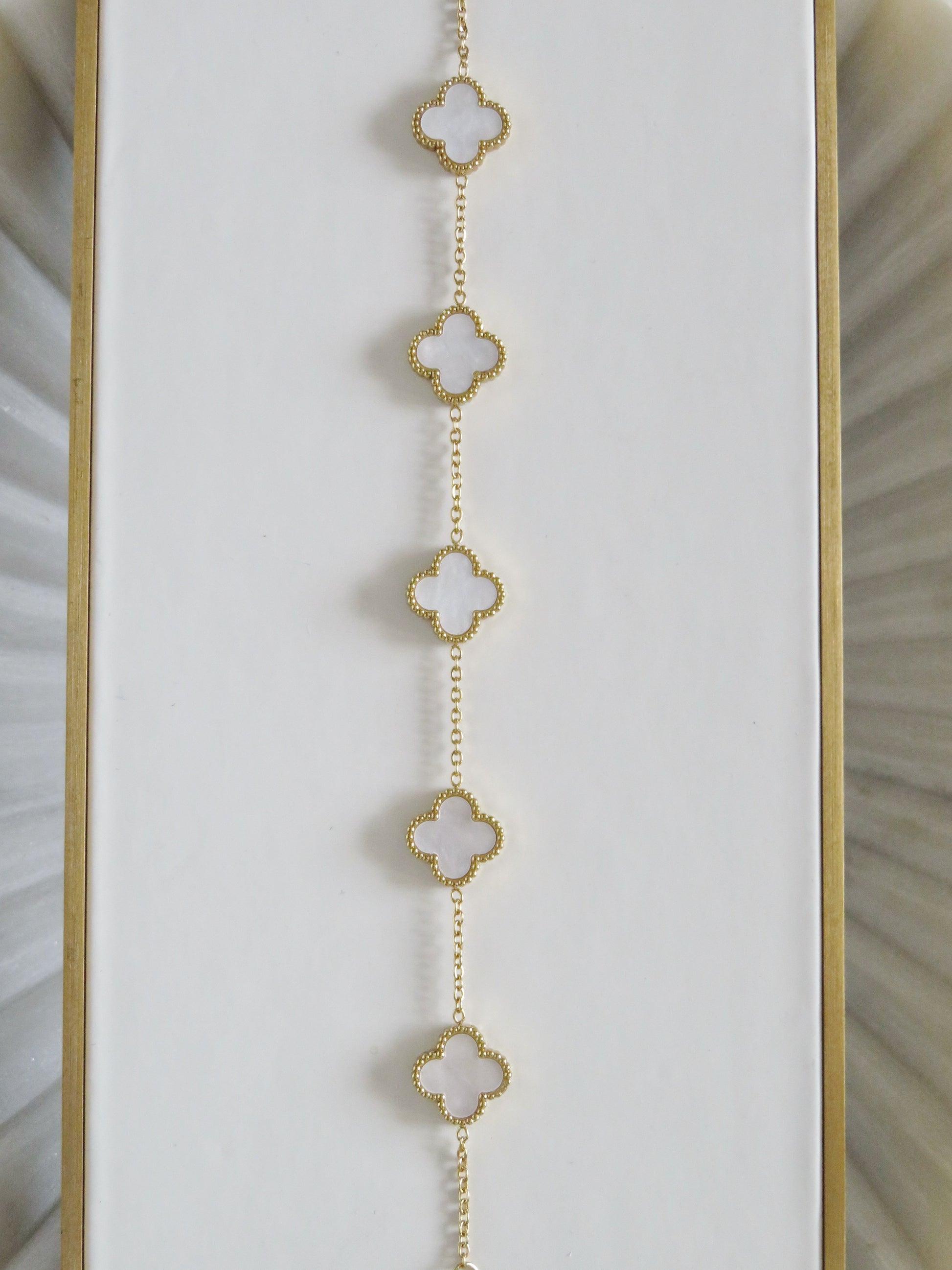 The clover symbolizes Love, Luck, Hope & Faith and is said to bring good luck to its wearer.