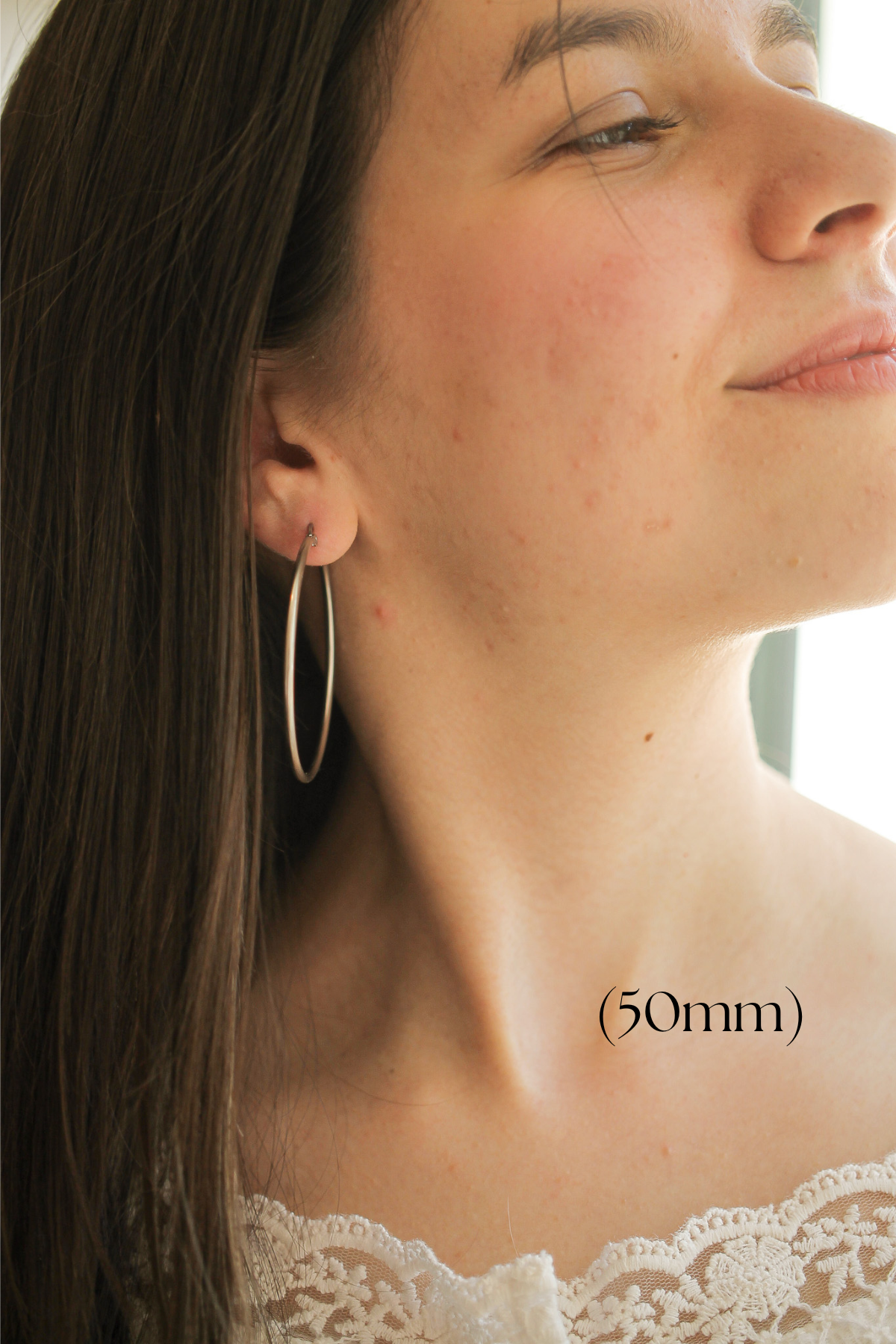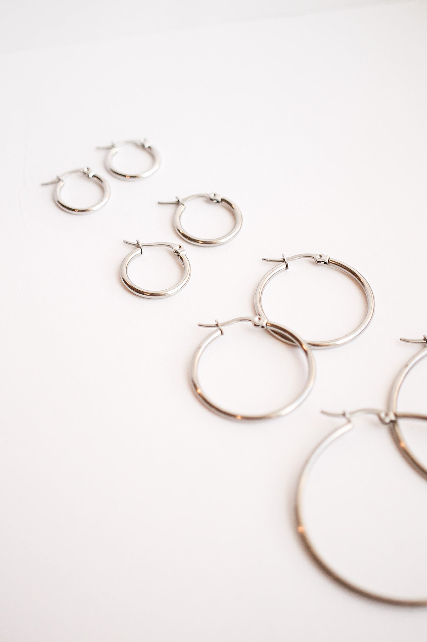 These hoops are so classy! If you are looking for a solid hoop, look no further. They come in multiple different sizes so they are a true match for everyone! If you want to dress up your outfits with a simple hoop, you need these!