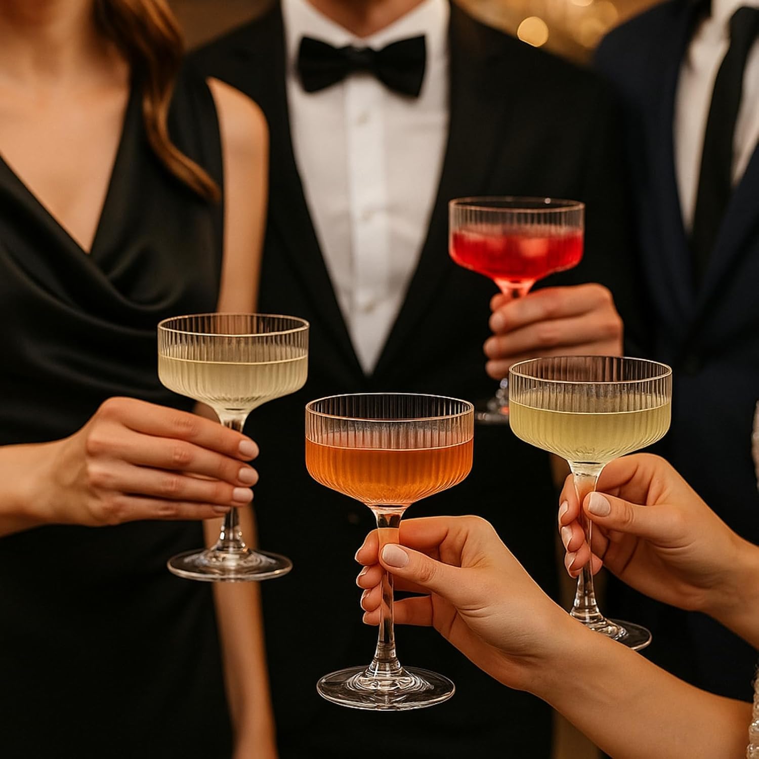 ELEGANT VINTAGE DESIGN – Elevate any bar with our vintage coupe glasses featuring a modern twist. The ribbed crystal pattern adds a stylish and elegant touch to every drink. A must-have addition to any cocktail glassware set for both casual gatherings and formal receptions.