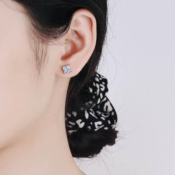 S925 Square Princess Cut CZ or Moissanite Stud Earrings, 0.6-2ct Sterling Silver Hypoallergenic Zirconia Gift for Her Him