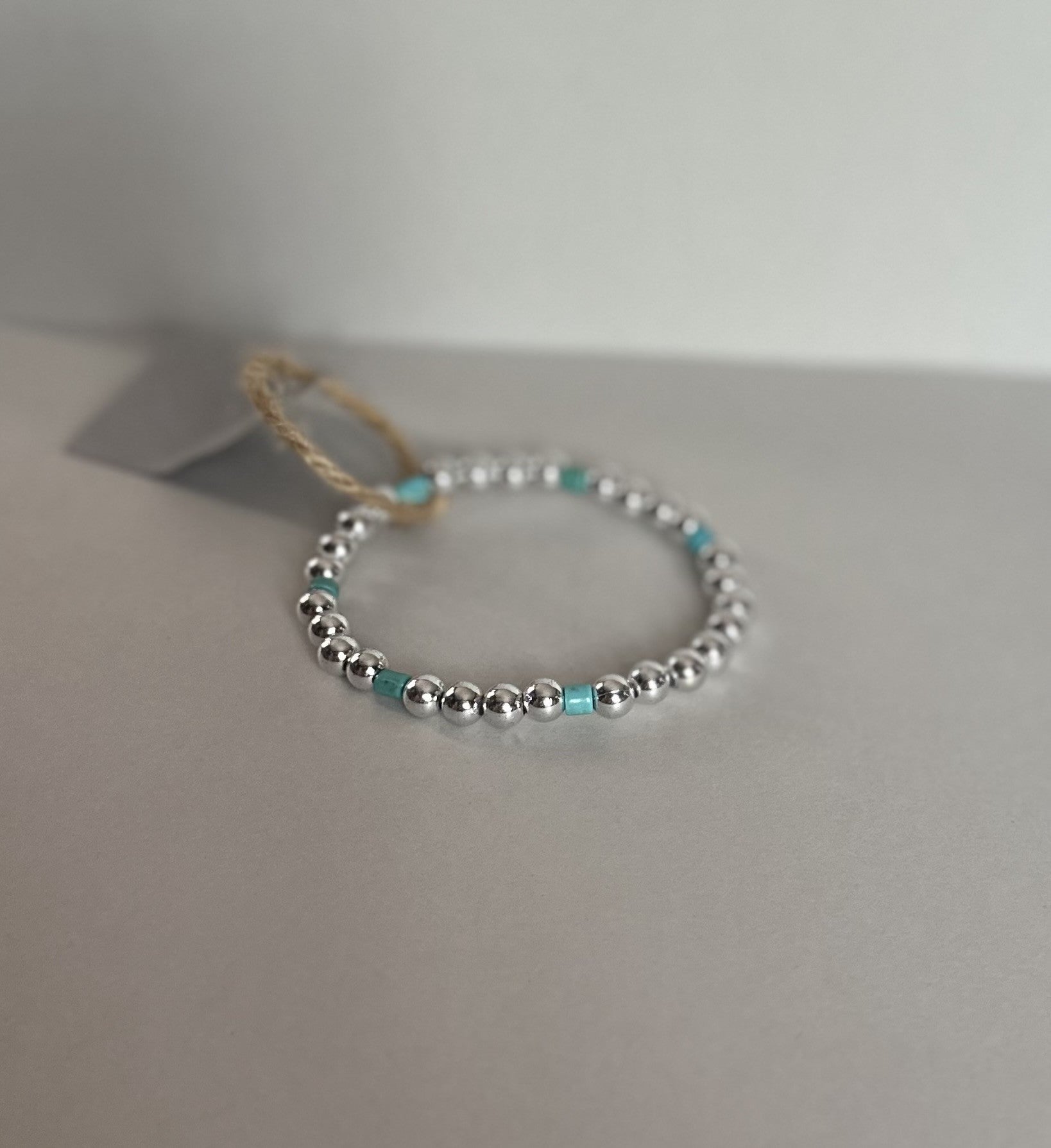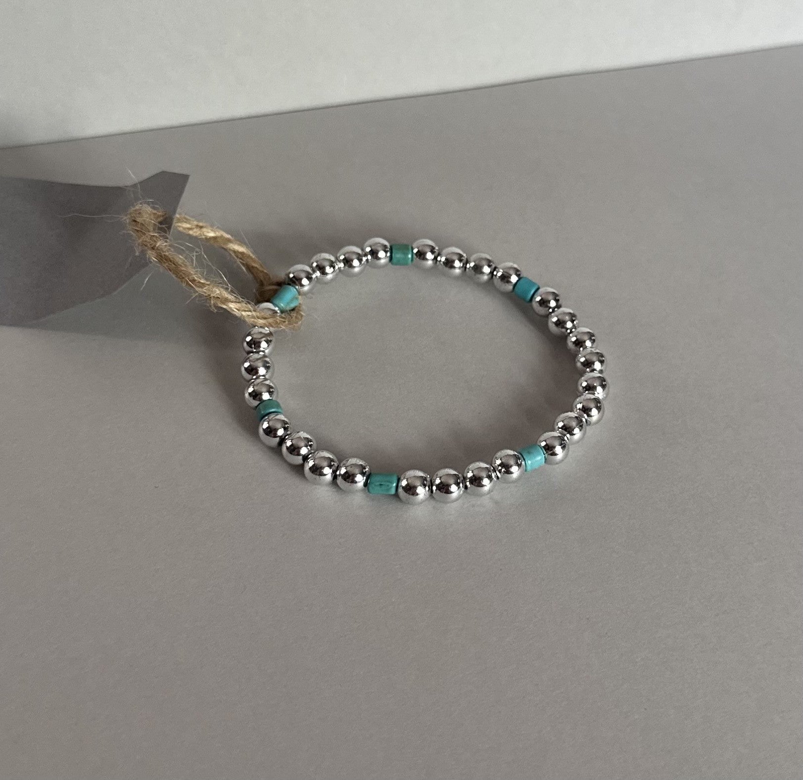 Handmade | Western Bold | Silver & Turquoise Beaded Bracelet